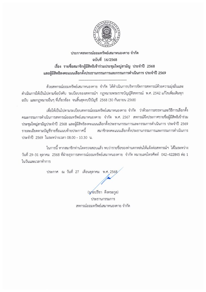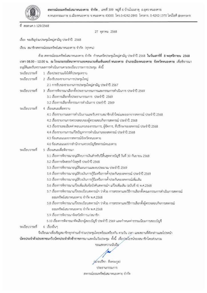 สมาชิกสามารถดาวน์โหลดรายงานประจำปี 2568 ได้ที่ >>> https://drive.google.com/…/198XK3P34Il347f3_rEq…/view…