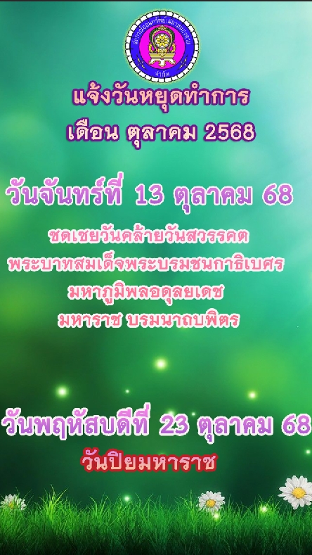 ประกาศวัยหบุดทำการ เดือน ตุลาคม 2568