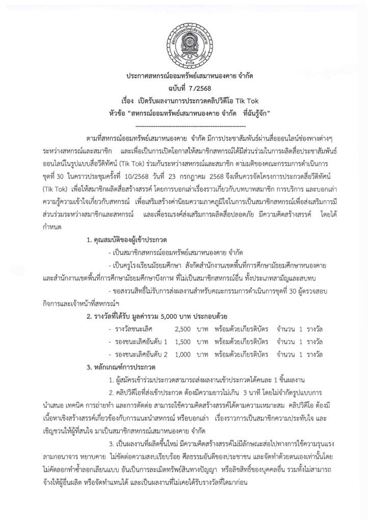 เปิดรับผลงานการประกวดคลิปวิดีโอ Tik Tokก.ค. 25, 2025wpsemankประกาศสหกรณ์หัวข้อ “สหกรณ์ออมทรัพย์เสมาหนองคาย จำกัด ที่ฉันรู้จัก”