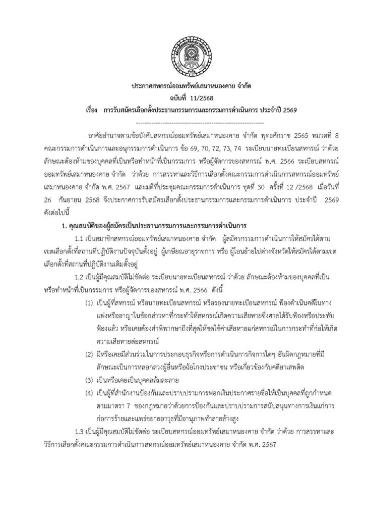 การหาเสียงเลือกตั้งเลือกตั้งประธานกรรมการและกรรมการดำเนินการ สหกรณ์ออมทรัพย์เสมาหนองคาย จำกัด ประจำปี 2569ก.ย. 29, 2025wpsemankประกาศสหกรณ์